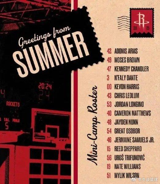 近日,休斯顿火箭官方公布了今年参加拉斯维加斯夏季联赛的球员名单,其中摩西・布朗和肯尼迪・钱德勒的名字格外引人关注,两人过往职业生涯经历以及在夏季联赛中的表现,都令火箭球迷很是期待。